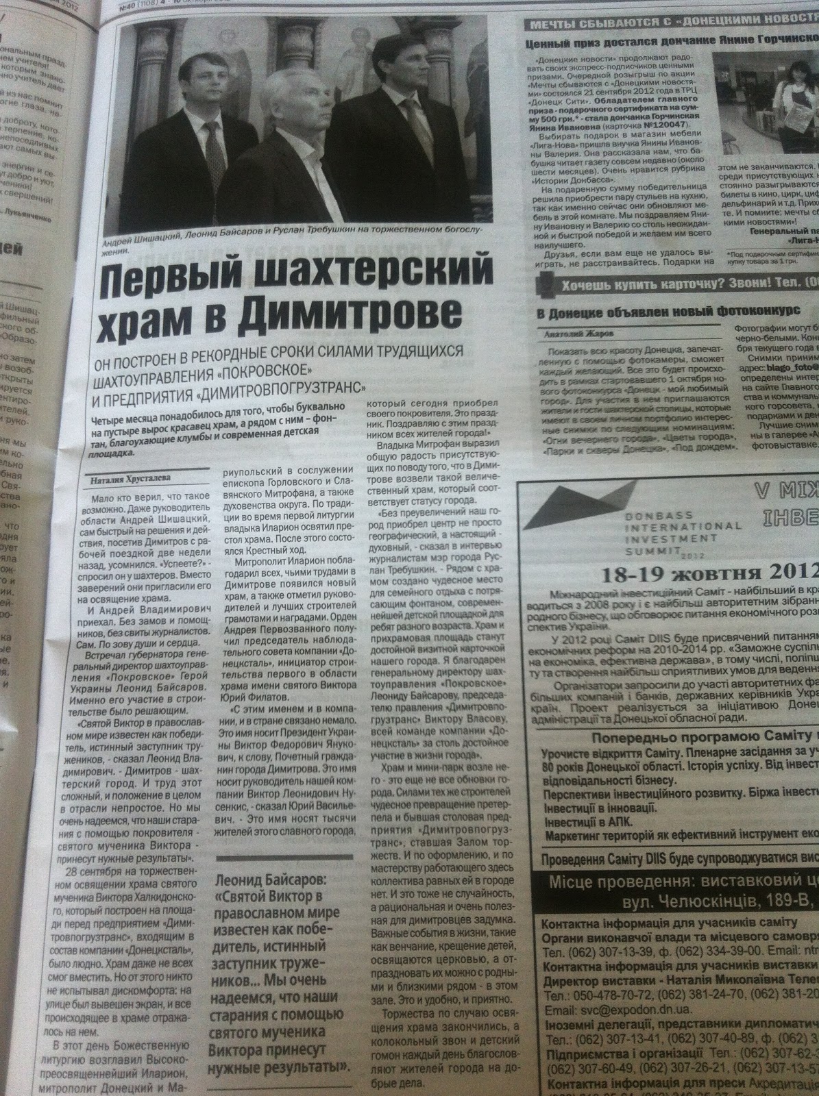 «Донецкие новости» (№ 40 от 4-10 октября 2012 года);